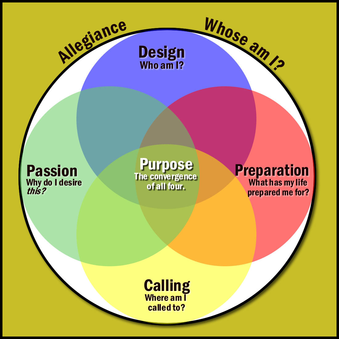 In the second major section, the book presents a model for life purpose discovery based on five themes: Allegiance, Design, Passion, Preparation and Calling. By adding calling and allegiance to the more familiar exploration of our passions, nature (design) and nurture (preparation), this model roots the whole discovery process in obedience and being part of God's larger plan for creation.